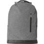 600D RPET poliészter lopásgátló hátizsák hátul gurulós bőröndre húzható pánttal. Elöl egy kis cipzáros zseb. Mindkét oldalán palacktartó zseb. Belül egy nagy rekesz tépőzáras laptop zsebbel. Alkalmas nagyméretű laptopokhoz. Állítható vállpántok. Alul egy kis bélelt rész újrahasznosított autógumiból.