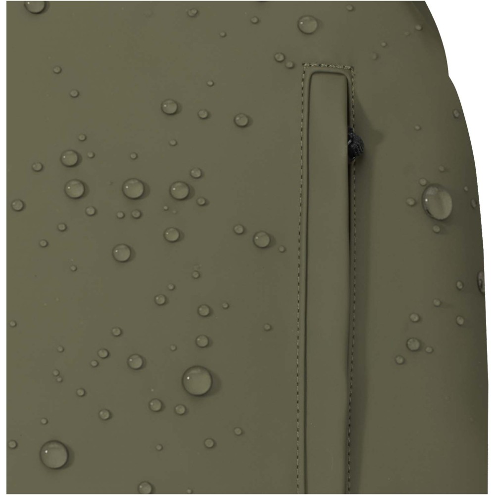 A prémium minőségű, GRS tanúsítvánnyal rendelkező újrahasznosított PU bőrből készült, színben passzoló RPET béléssel ellátott 15?-os biztonsági hátizsák garantálja az értékek védelmét és szárazon tartását útközben. A termék hátulról hozzáférhető laptoprekeszel, két letisztult oldalsó zsebbel, valamint egy vízálló cipzárral felszerelt elülső zsebbel rendelkezik. A légáteresztő hátlap biztosítja az egész napos kényelmet, így ideális választás ingázáshoz, utazáshoz vagy városi használatra. Űrtartalma: 18 liter.