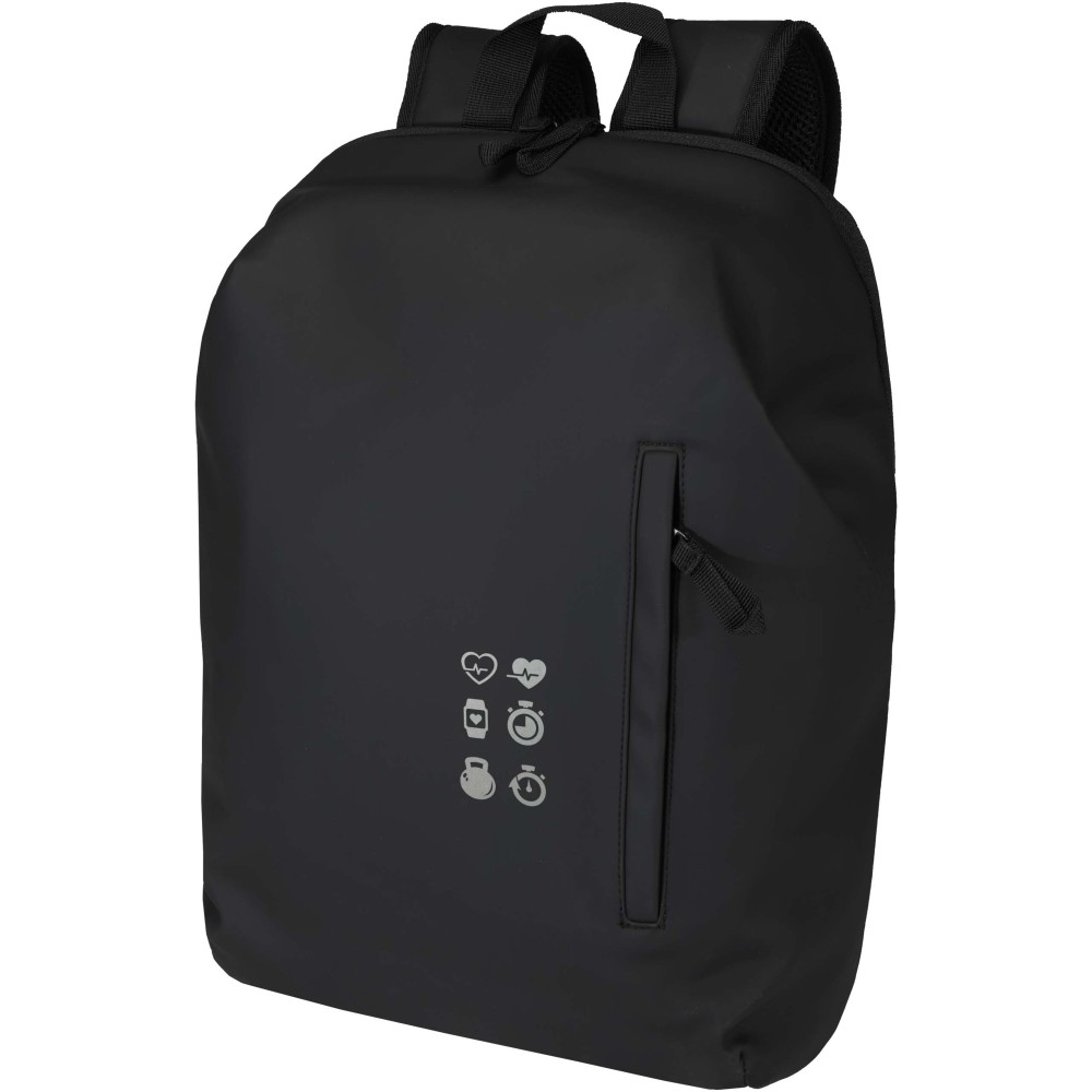 A prémium minőségű, GRS tanúsítvánnyal rendelkező újrahasznosított PU bőrből készült, színben passzoló RPET béléssel ellátott 15?-os biztonsági hátizsák garantálja az értékek védelmét és szárazon tartását útközben. A termék hátulról hozzáférhető laptoprekeszel, két letisztult oldalsó zsebbel, valamint egy vízálló cipzárral felszerelt elülső zsebbel rendelkezik. A légáteresztő hátlap biztosítja az egész napos kényelmet, így ideális választás ingázáshoz, utazáshoz vagy városi használatra. Űrtartalma: 18 liter.
