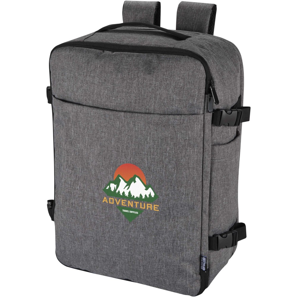 GRS tanúsítvánnyal rendelkező újrahasznosított poliészterből készült, RPET béléssel ellátott Libra hátizsák, melynek méretei megfelelnek a légitársaságok kézipoggyászra vonatkozó előírásainak. A táska egy dedikált, legfeljebb 17" méretű eszközök fogadására alkalmas laptoptartó rekesszel, valamint egy tágas főrésszel rendelkezik, amelyben rugalmas pántok és hálós elválasztók biztosítják a tartalom rendezettségét. Az elülső oldalon két nagyméretű cipzáras zseb található az alapvető kellékek gyors eléréséhez. A kényelmes viseletről és a praktikus szállításról légáteresztő hátpanel, bőröndre rögzíthető pánt, állítható vállpántok, mellkaspánt, valamint felső és oldalsó hordozófogantyúk gondoskodnak. Letisztult megjelenése és funkcionális kialakítása miatt kiváló választás üzleti utakhoz vagy irodán kívüli munkavégzéshez, miközben alapanyaga az öko-tudatosságot tükrözi.