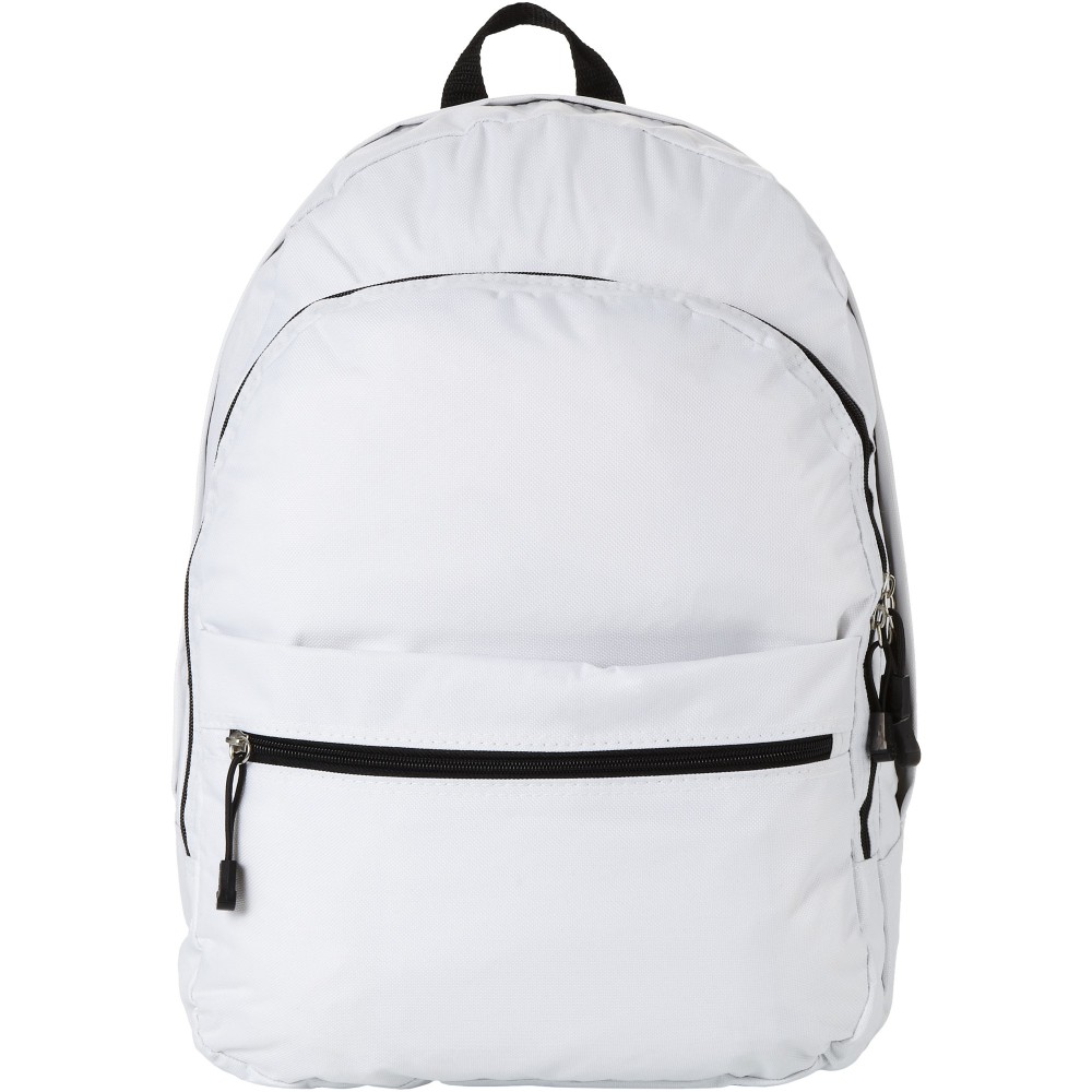A kényelmes Trend hátizsák nyerő a promóciós hátizsákok között. A divatos kialakítású táska négy rekesszel rendelkezik: két cipzáras rekesszel, egy elülső cipzáras zsebbel és egy tépőzáras elülső zsebbel, így bőséges helyet kínál nagy és kis tárgyak tárolására egyaránt. A termék 600D poliészterből készült.