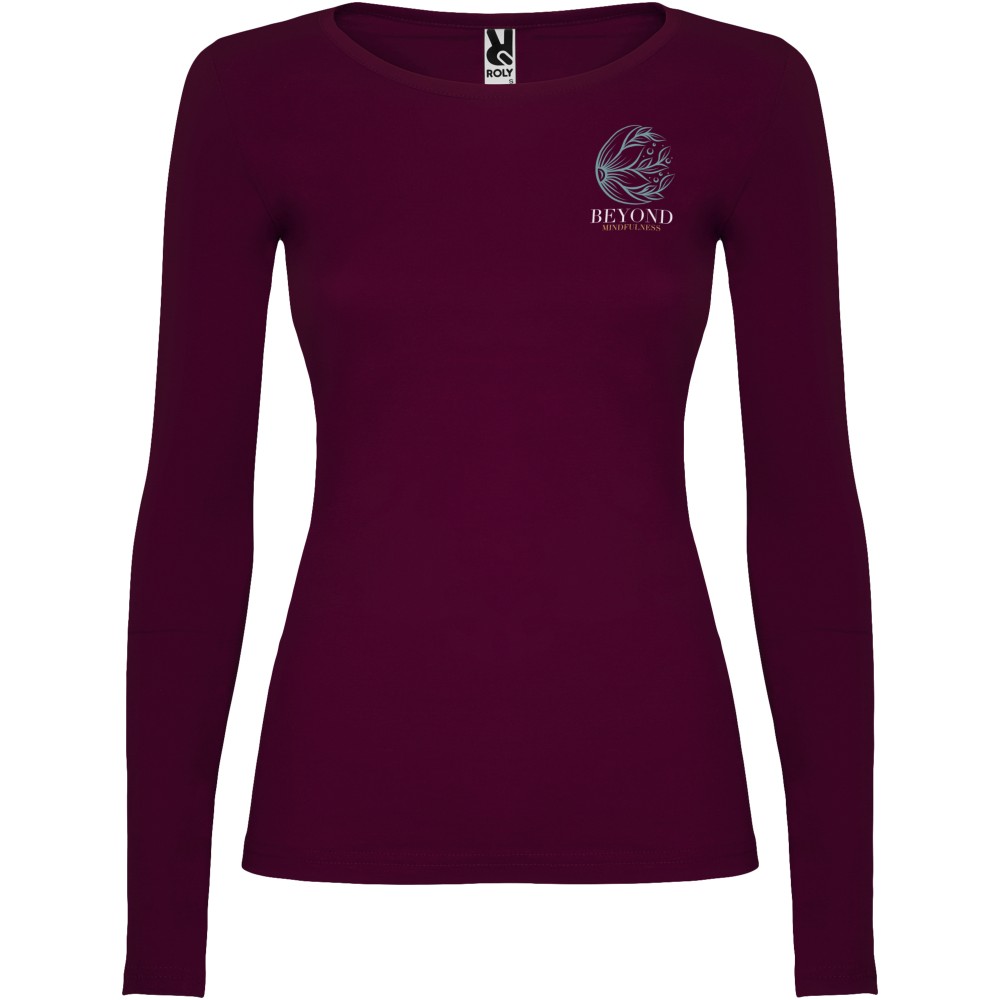 Hosszúujjú, oldalvarott, enyhén karcsúsított női póló 4 rétegű, kerek, keskeny nyakkal. Nincs ujj- és aljpasszé. Megerősített nyaki varrások. A férfi modell körkötött, a gyermek és női modell oldalvarrott. Szürke szín: 85% pamut és 15% viszkóz, 160 g/m2. Egyéb színek: 100% pamut, 160 g/m2.