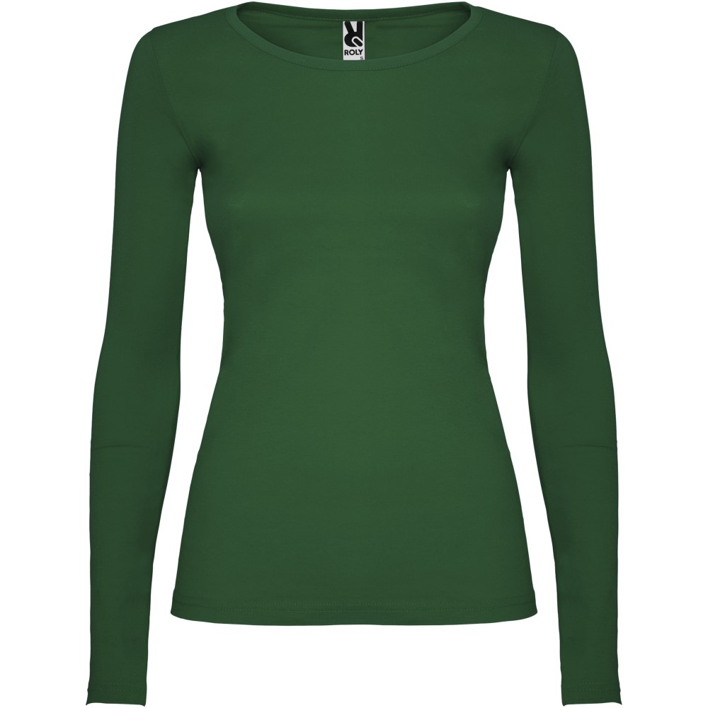 Hosszúujjú, oldalvarott, enyhén karcsúsított női póló 4 rétegű, kerek, keskeny nyakkal. Nincs ujj- és aljpasszé. Megerősített nyaki varrások. A férfi modell körkötött, a gyermek és női modell oldalvarrott. Szürke szín: 85% pamut és 15% viszkóz, 160 g/m2. Egyéb színek: 100% pamut, 160 g/m2.