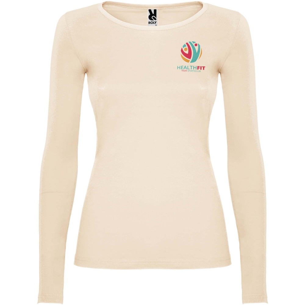 Hosszúujjú, oldalvarott, enyhén karcsúsított női póló 4 rétegű, kerek, keskeny nyakkal. Nincs ujj- és aljpasszé. Megerősített nyaki varrások. A férfi modell körkötött, a gyermek és női modell oldalvarrott. Szürke szín: 85% pamut és 15% viszkóz, 160 g/m2. Egyéb színek: 100% pamut, 160 g/m2.