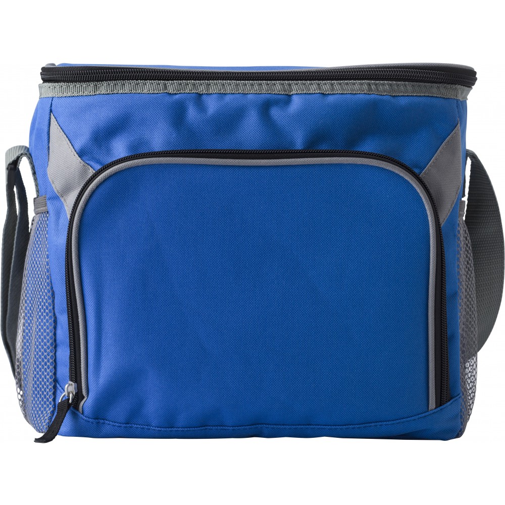 Hűtőtáska nagy cipzáros elsőzsebbel és mindkét végén hálós zsebekkel. 600D poliészter.