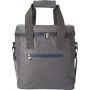 Hűtőtáska egy nagy főrésszel és cipzáros elsőzsebbel, fülekkel, vállpánttal. PE, PU műanyag.