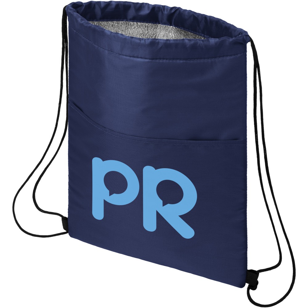 Hátizsák és hűtőtáska fekete húzózsinórral 12 doboz számára. Teherbírás 5 kg-ig. 210D poliészter.
