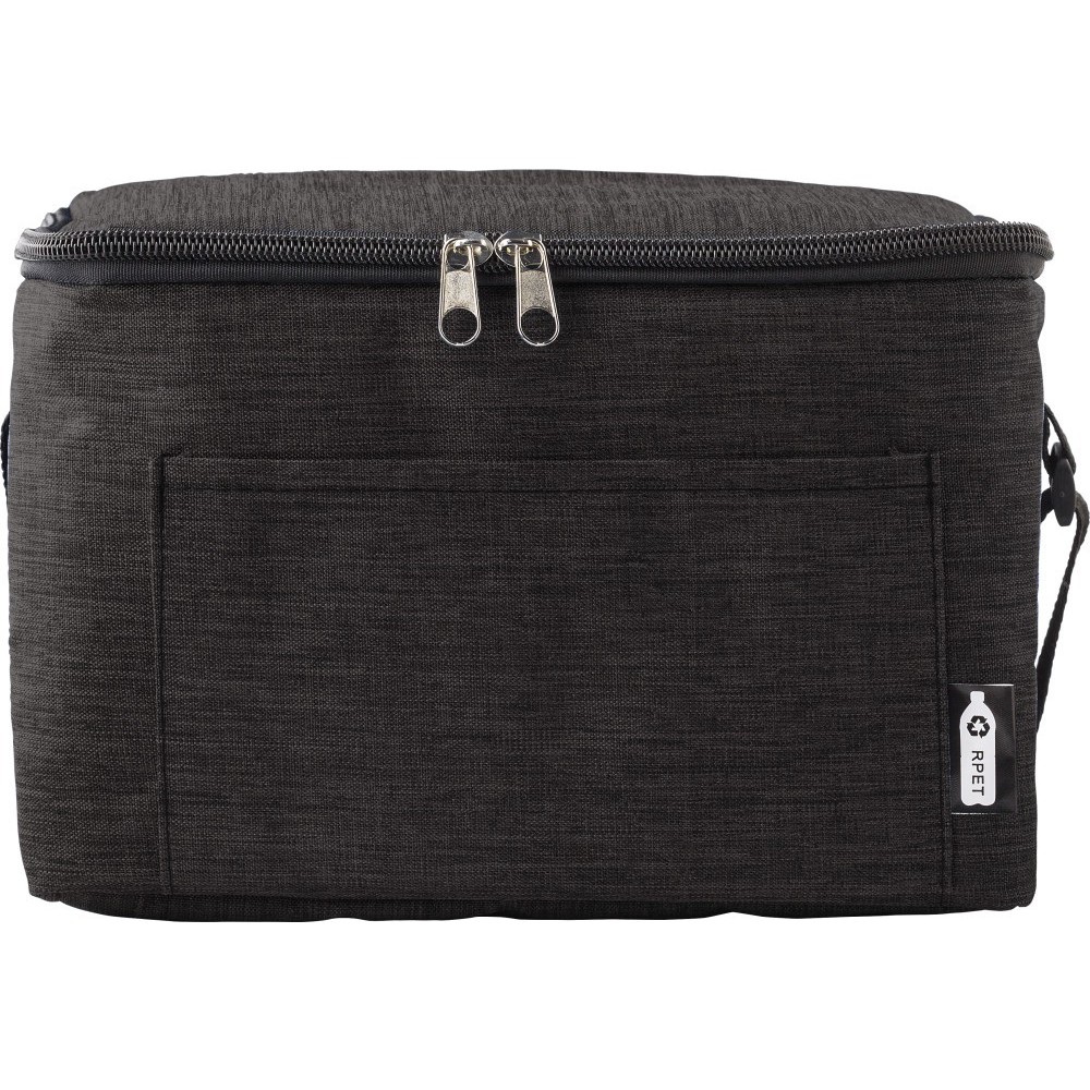 Hűtőtáska hat darab 330 ml-es üdítősdoboz számára. Cipzárral, első zsebbel és állítható pánttal. Űrtartalom: 3 liter. Poliészter (600D) és RPET anyag PEVA belsővel.