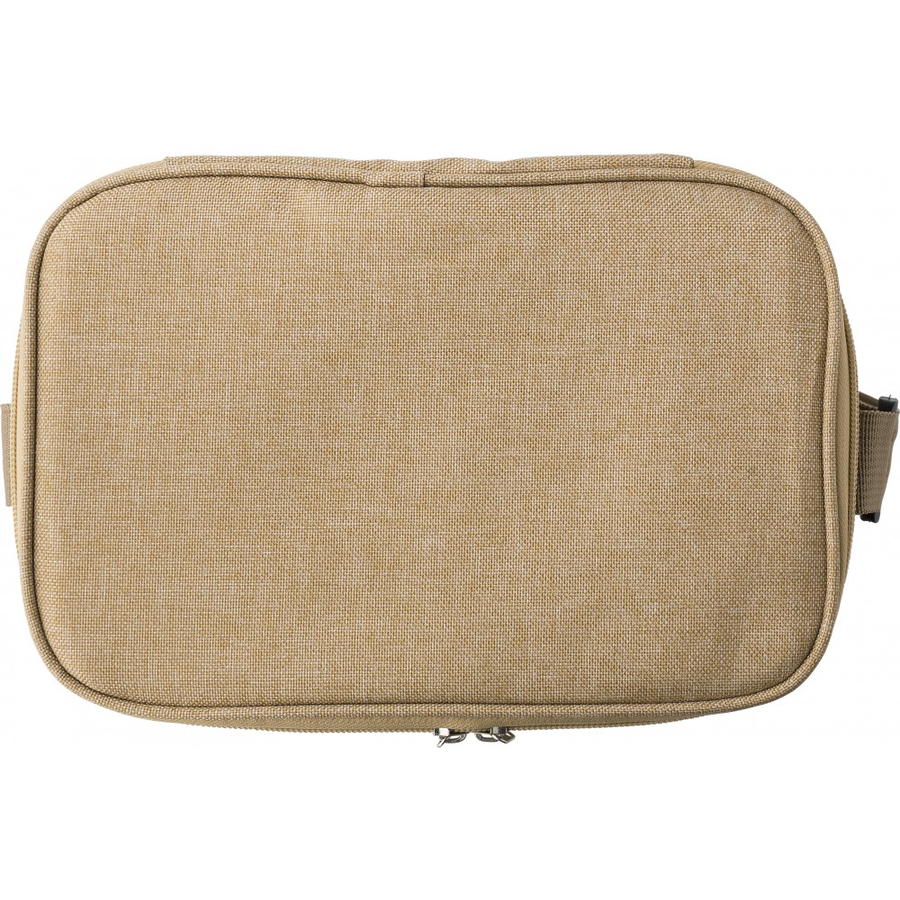 Hűtőtáska parafa aljjal, EVA szigetelő béléssel, állítható vállpánttal. Elülső oldalán egy kis zseb található. 600D RPET poliészter.
