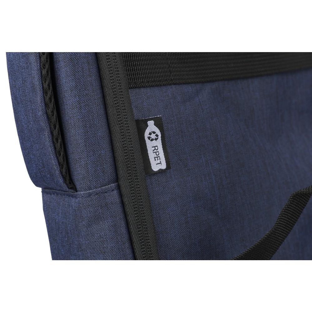 Laptophátizsák 300D rPET poliészter anyagból, 210D rPET béléssel. Egy nagy cipzáras rekesszel, számtalan belső zsebbel, tépőzáras laptoptartó zsebbel 15 -es laptop számára és 12 literes űrtartalommal. Megerősített, szellőző hátrésszel, állítható vállpánttal, oldalsó hordozófüllel és gurulóstáskára való felhelyezésre alkalmas pánttal. Teherbíró képesség: 10 kg.