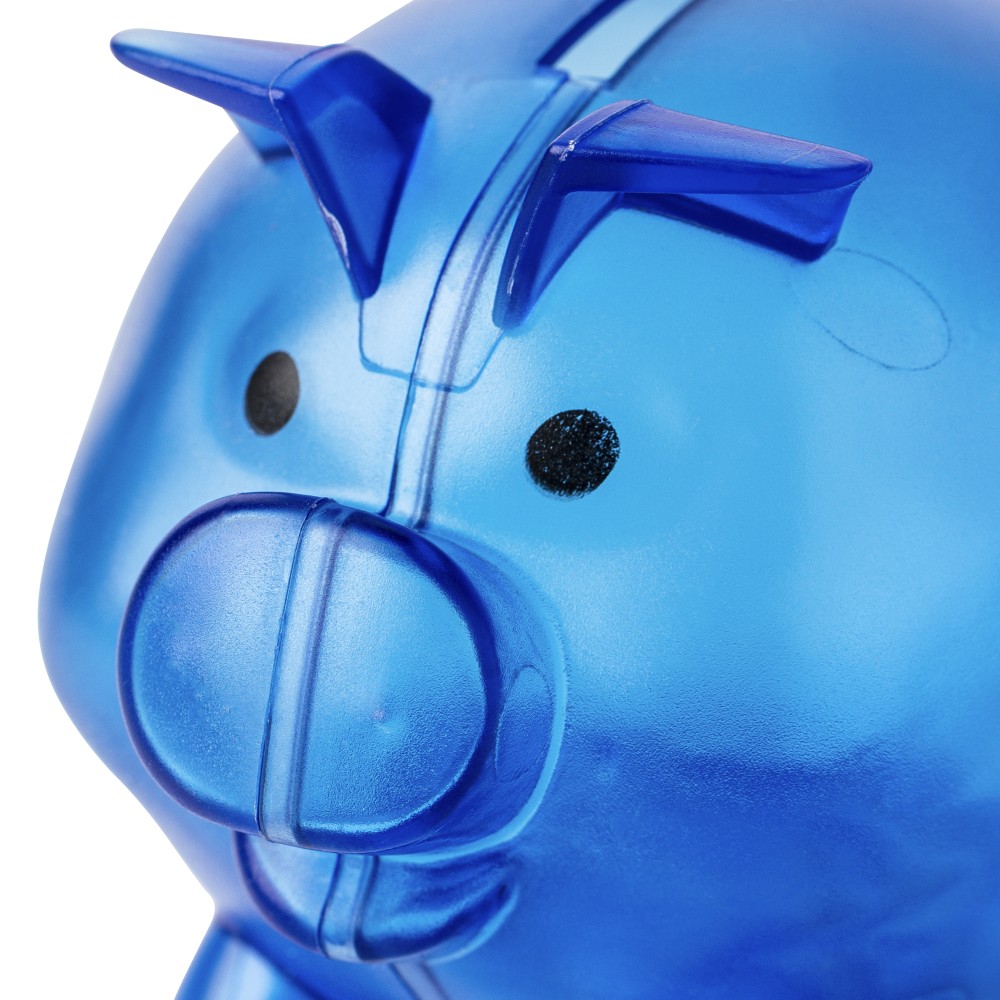 Újrahasznosított PS műanyagból készült, malacpersely. A hátoldalon recycled (újrahasznosított) alapanyagra utaló logó található.
