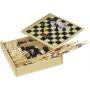 5 in 1 játék fadobozban. Tartalma: Ki nevet a végén?, dominó, sakk, dámajáték és mikádó.