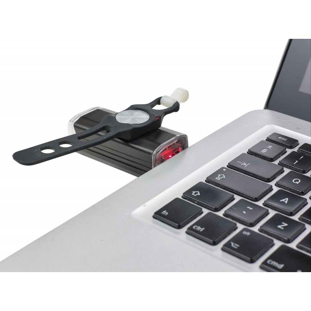 COB biciklilámpa USB csatlakozóval, amely a töltést is lehetővé teszi, tetején ki-/bekapcsoló gombbal, 4-féle beállítási móddal: folyamatosan világító, csökkentett fényerővel világító, gyors villogó, lassú villogó. Mágneses pánttal rögzíthető a kerékpár kormányára.