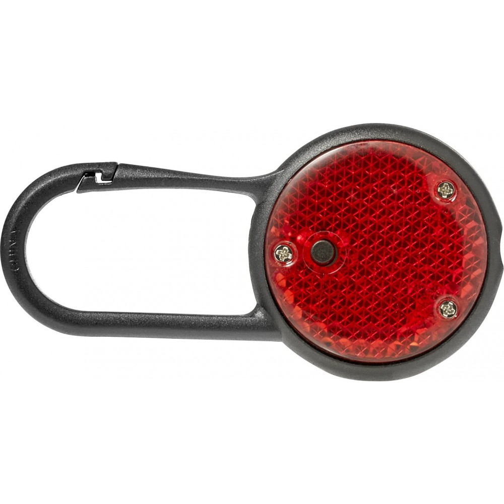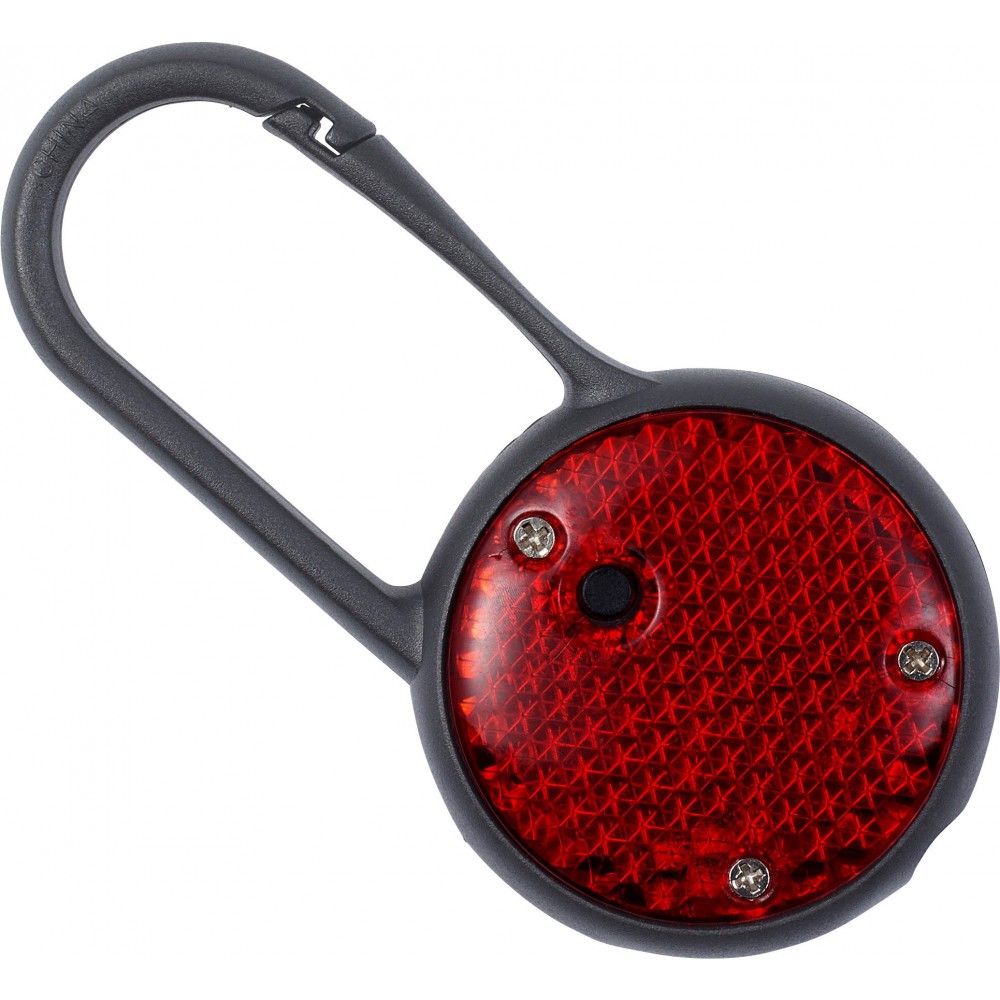 Biztonsági villogófény karabinerrel. Az elemet tartalmazza. PS, PP.