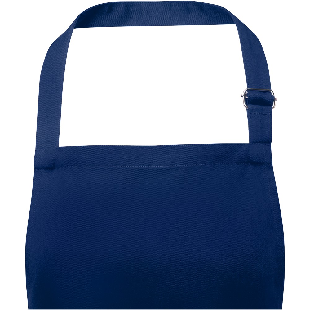 Vastag és masszív anyag, ugyanakkor puha és kényelmes viselet. A két elülső zseb gyors és egyszerű módot kínál a konyhai eszközök tárolására. A kötény nyakában csattal állítható, hátul megköthető. Nagyméretű nyomtatási lehetőség a logók megjelenítéséhez. Pamut twill 65% poliészterből és 35% pamutból, 240 g/m2.