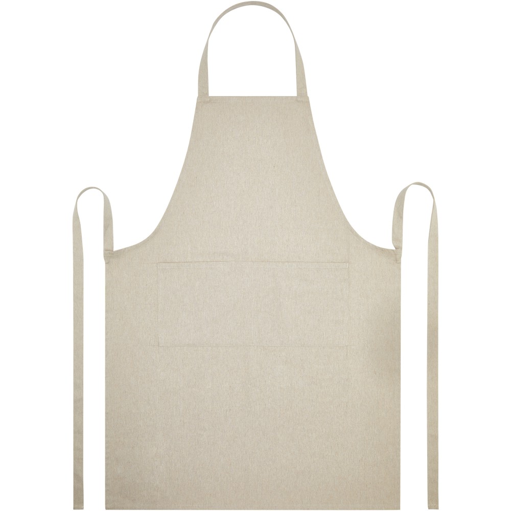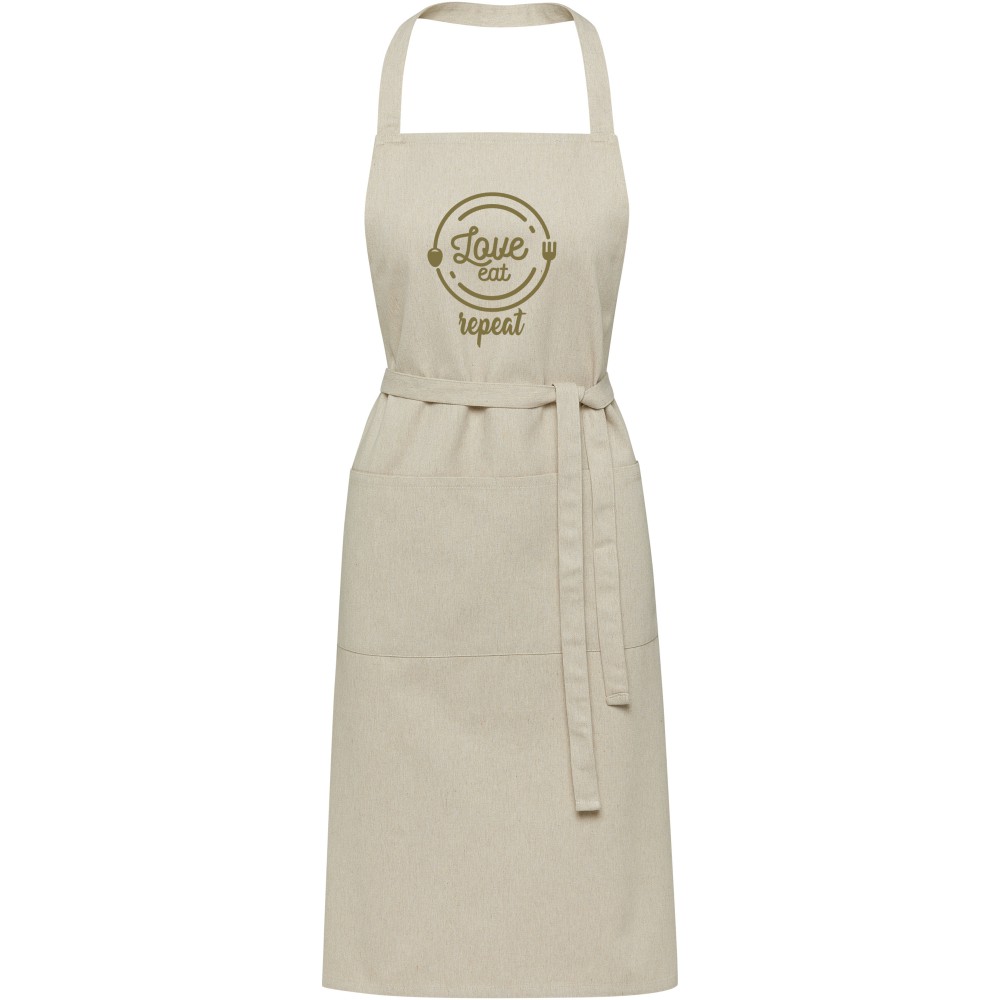 A Shara kötény 70% újrahasznosított pamutból és 30% újrahasznosított poliészterből készült, így vastag, strapabíró és kényelmes viselet. A kötény 2 egymás melletti zsebbel (egyenként 22 x 20 cm) és egy 1 méteres megkötővel rendelkezik. A kötény Cyclo újrahasznosított szálakat tartalmaz, ahol előválogatott hulladékot használnak, amely meghatározza a fonal színét. Minden kötényhez egy Aware nyomjelző is tartozik. Ez az innovatív funkció lehetővé teszi a felhasználók számára, hogy egy QR-kód segítségével nyomon követhessék a termék eredetét és útját, növelve az ellátási lánc átláthatóságát és elősegítve a termék és a gyártási folyamat közötti szorosabb kapcsolatot.