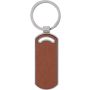 Kulcstartó ovális alakú, újrahasznosított bőrből, fém karikával. Oldalán dombornyomott újrahasznosított bőr anyagra utaló logóval. Egyenként barna kartonhüvelybe csomagolva. Anyaga: újrahasznosított bőr.