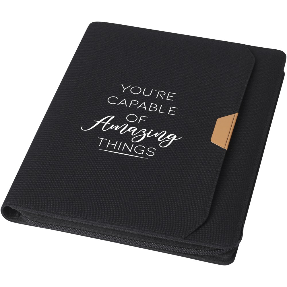 Az RCS tanúsítvánnyal rendelkező Nomumi portfólió részben újrahasznosított poliészterből készül, így ez a portfólió fenntarthatóbb választás, mivel segít csökkenteni az új nyersanyag felhasználást. Cipzáras záródással, tollhurokkal, harmonikazsebbel és 20 fehér vonalas lappal rendelkezik, amelyek 70 g/m2 -es, fenntartható forrásból származó, újrahasznosított papírból készültek. A képeken látható toll és egyéb kiegészítők nem tartoznak a termékhez.