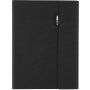 RPET mappa kb. A5-ös méretben, több rekesszel, telefontartóval és mágneses zárással. Tartalmazza a jegyzettömböt 64 vonalas lappal. Egyedileg csomagolva kraft papír tokba.