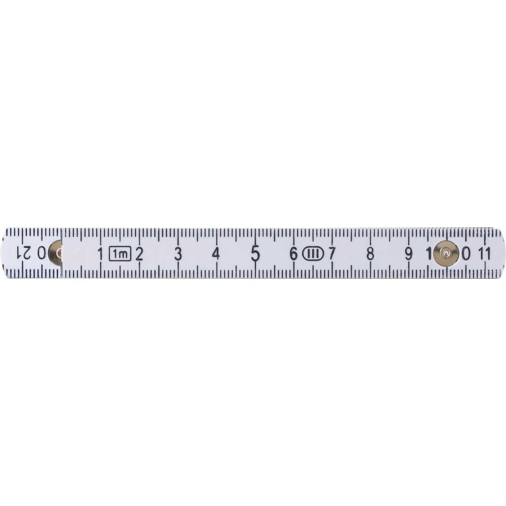 1 méteres colstok, 1 oldalán cm beosztással, másik oldala üres. Műanyag.