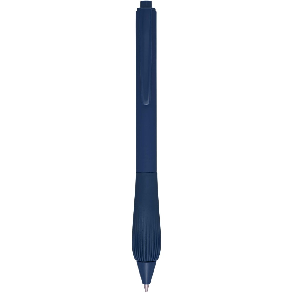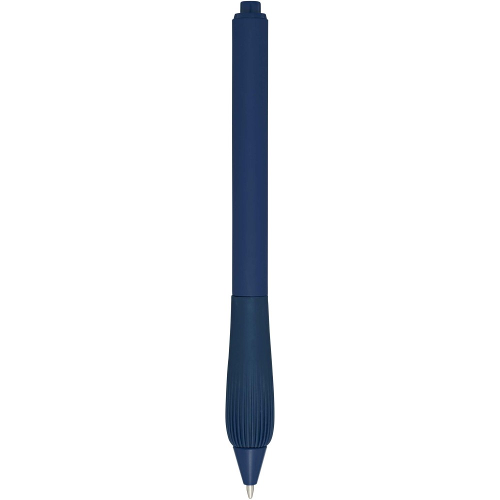 Újrahasznosított műanyag golyóstoll gumírozott tolltesttel és TPR anyagból készült fogórésszel. Kék tollbetéttel. Írási hossz: 1000 méter. Hegyméret: 1,0 mm.