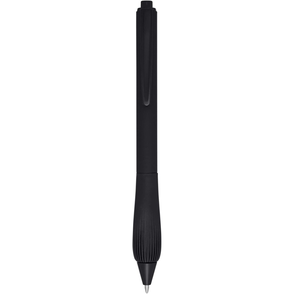 Újrahasznosított műanyag golyóstoll gumírozott tolltesttel és TPR anyagból készült fogórésszel. Kék tollbetéttel. Írási hossz: 1000 méter. Hegyméret: 1,0 mm.