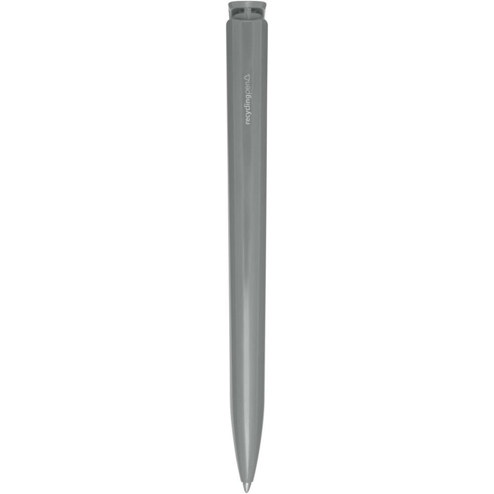 Golyóstoll, amelynek teste és klipsze újrahasznosított műanyagból készült, a hegy pedig rozsdamentes acélból. Kék tollbetéttel. Íráshossz: 3000 méter. Hegyméret: 1,00 mm. Németországban készült.