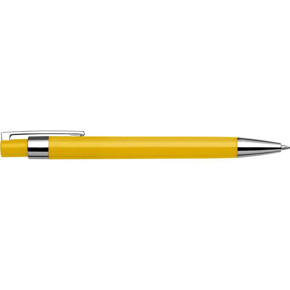 Műanyag golyóstoll fém klipsszel, fekete tollbetéttel.