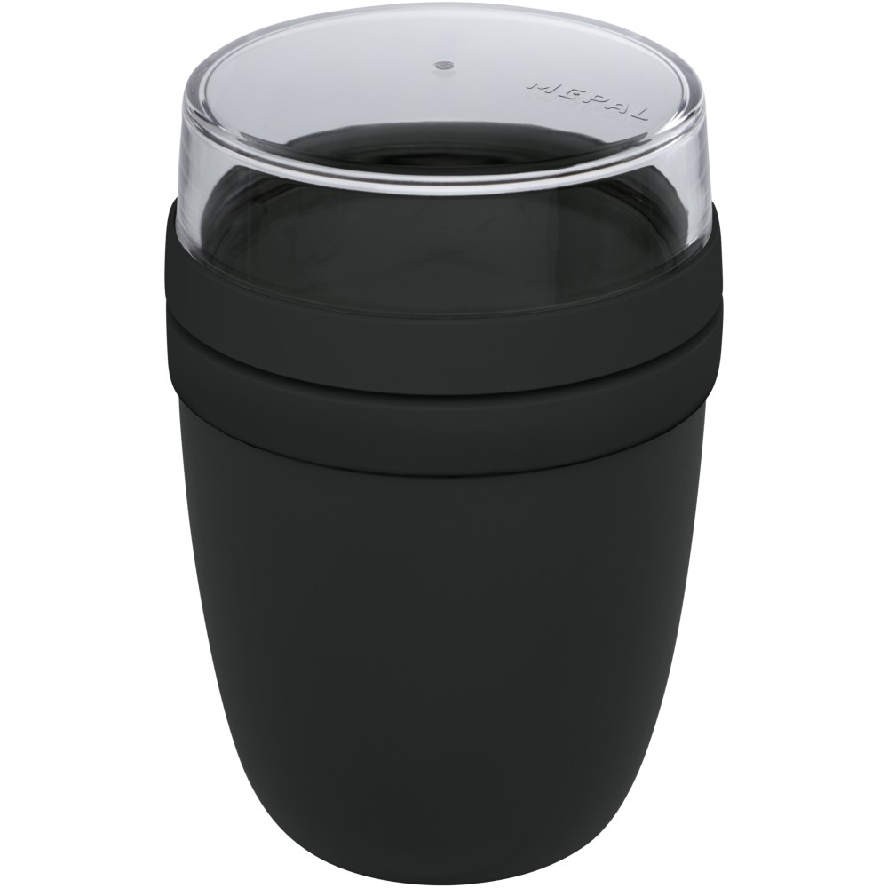 Ételtartó edény két rekesszel. Mindkét tartálynak külön fedele van. A felső, átlátszó rész űrtartalma 200 ml. Az alsó edény 500 ml-es. Fagyasztóba, mikrohullámú sütőbe (fedél nélkül), és mosogatógépbe tehető. A felső, átlátszó rész nem tehető mikrohullámú sütőbe. Szivárgásmentes. BPA mentes. PP műanyag, PCTG műanyag.
