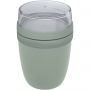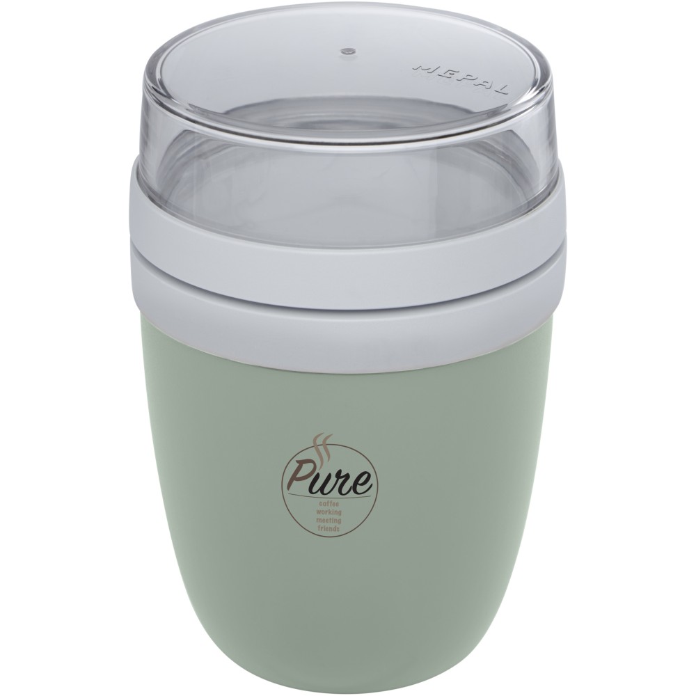 Ételtartó edény két rekesszel. Mindkét tartálynak külön fedele van. A felső, átlátszó rész űrtartalma 200 ml. Az alsó edény 500 ml-es. Fagyasztóba, mikrohullámú sütőbe (fedél nélkül), és mosogatógépbe tehető. A felső, átlátszó rész nem tehető mikrohullámú sütőbe. Szivárgásmentes. BPA mentes. PP műanyag, PCTG műanyag.