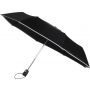 Összecsukható automata esernyő. Szélálló kialakítás, fém váz, tépőzáras összefogó pánt és tok. Nyitása és záródása is automatikus.