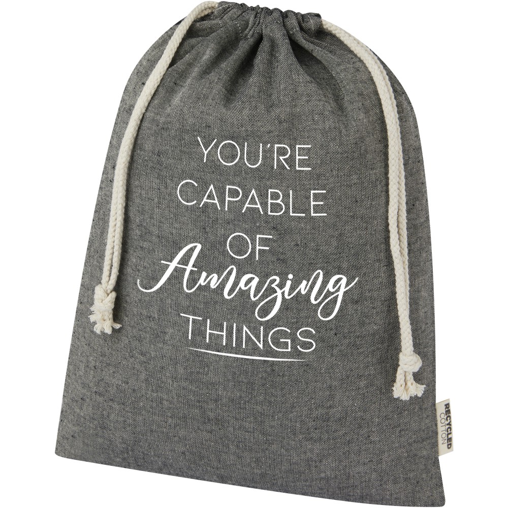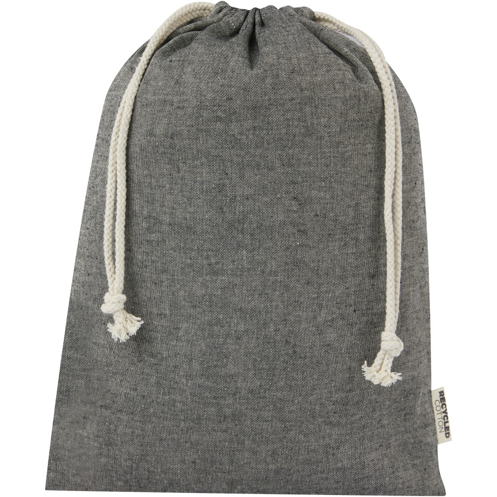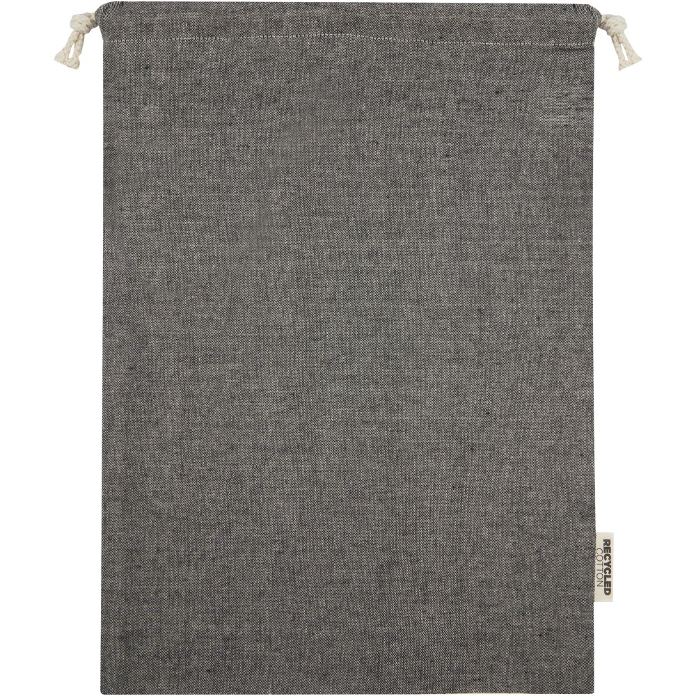 Ajándéktáska GRS tanúsítvánnyal rendelkező újrahasznosított pamutból, pamut húzózsinórral. Ideális ajándékok átadására, tárolására. Mérete: 30 x 42 cm.