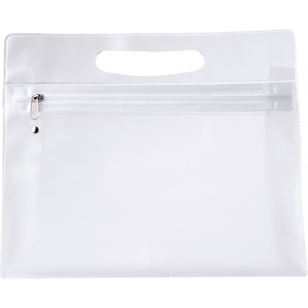PVC piperetáska opálos színekben, illeszkedő színű cipzárral.