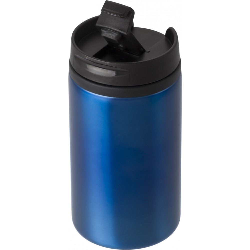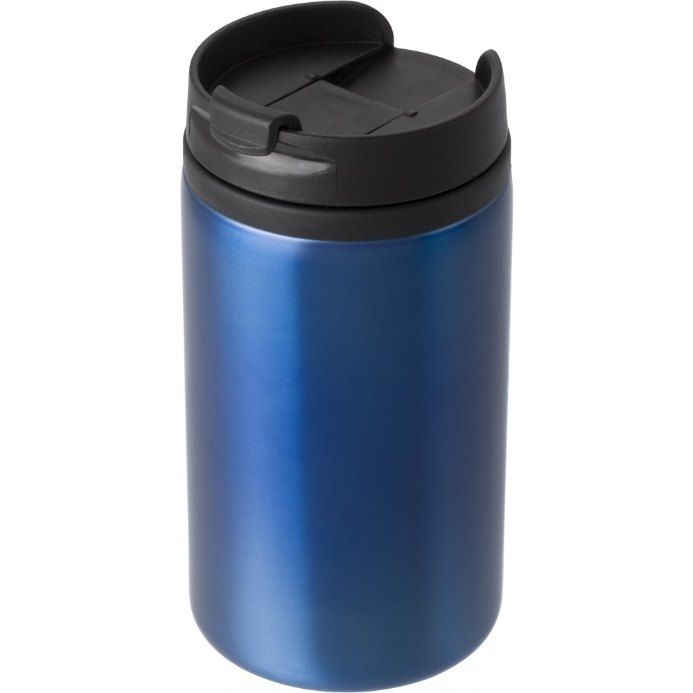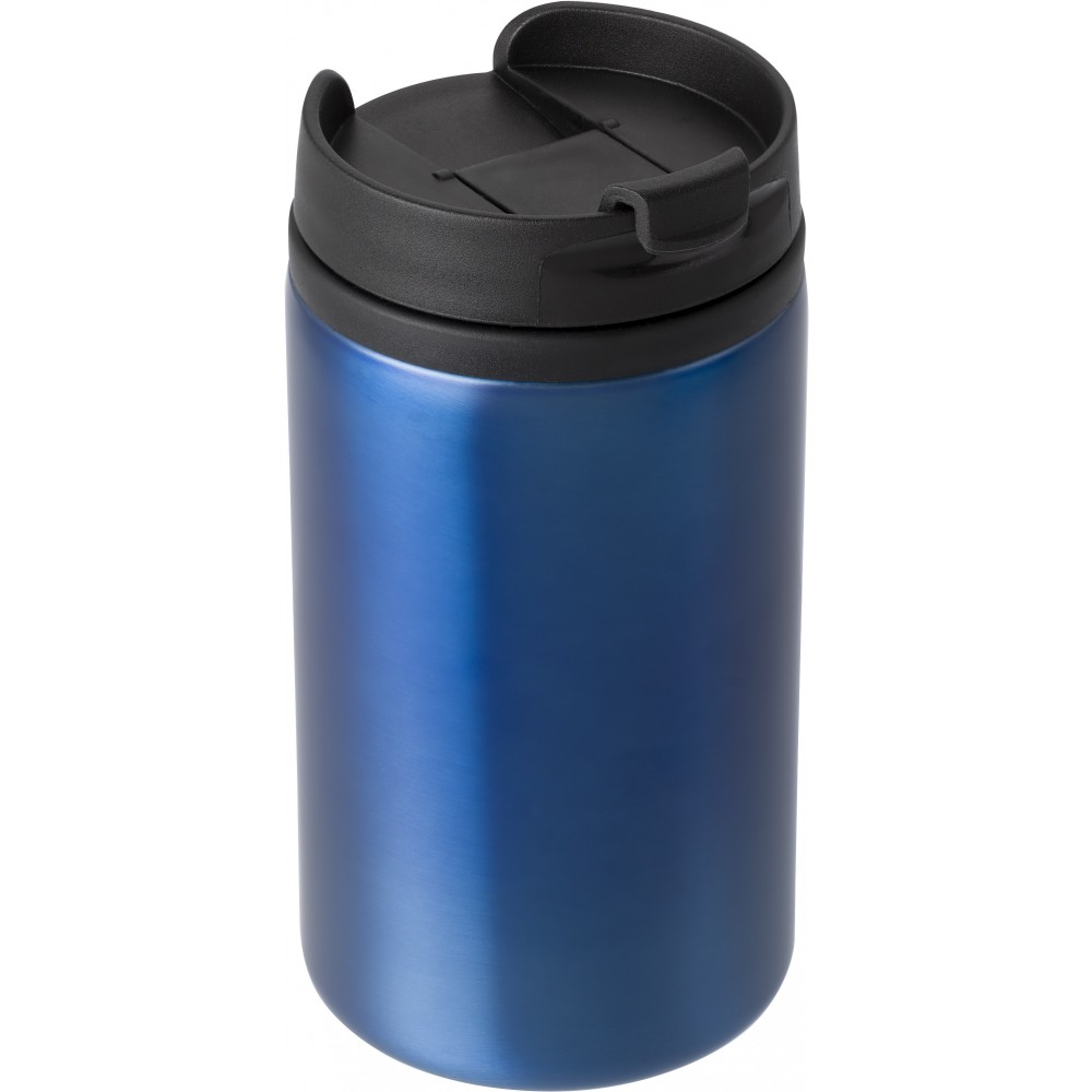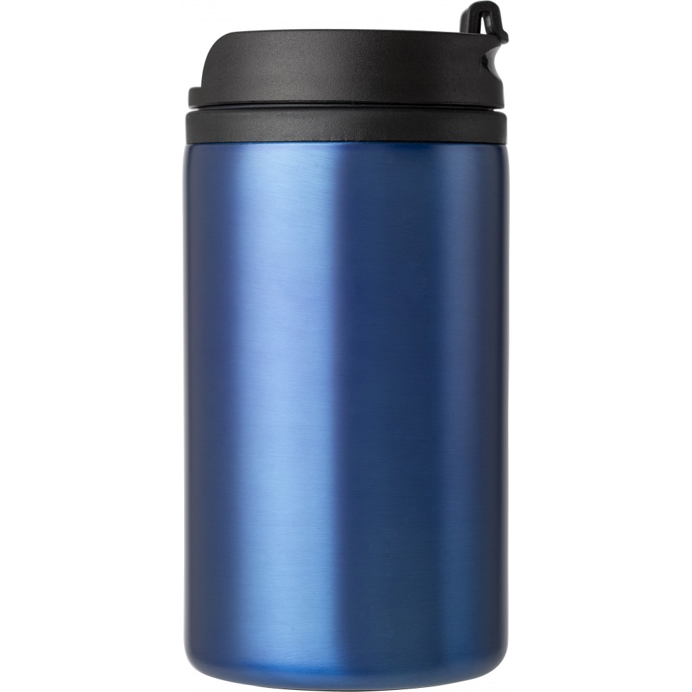 Duplafalú termoszpohár. A külső fal rozsdamentes acél, a belső fal műanyag. A csavaros fedél szivárgásmentes. A pohár alja csúszásgátlóval van ellátva. 300 ml. BPA-mentes műanyag. Nem mosogatógépálló termék.