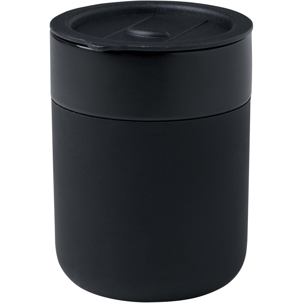 A Java egyfalú kerámia pohár egyszerű és praktikus kialakítással rendelkezik a mindennapi használatra, és szilikon borítással a kényelmes fogás érdekében. Cseppmentes fedéllel rendelkezik. Űrtartalom: 330 ml.