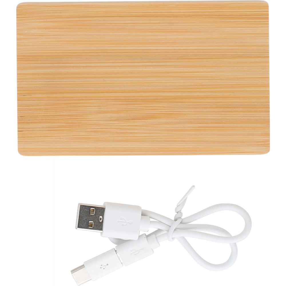Powerbank 4000 mAh kapacitással, li-polimer akkumulátorral, LED jelzőfénnyel. A vezetéket USB / USB-C csatlakozóval tartalmazza. Bemenet DC5V/1A, kimenet DC5V/1A, 3.7 V, és 2 USB csatlakozó. Bambusz. Veszélyes áru, csomagban nem küldhető.