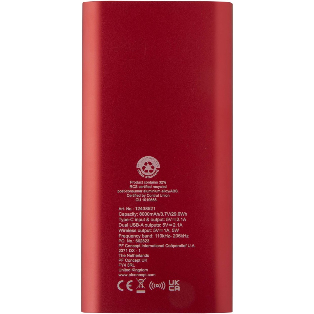 Juice alumínium vezeték nélküli powerbank, 8000 mAh, piros