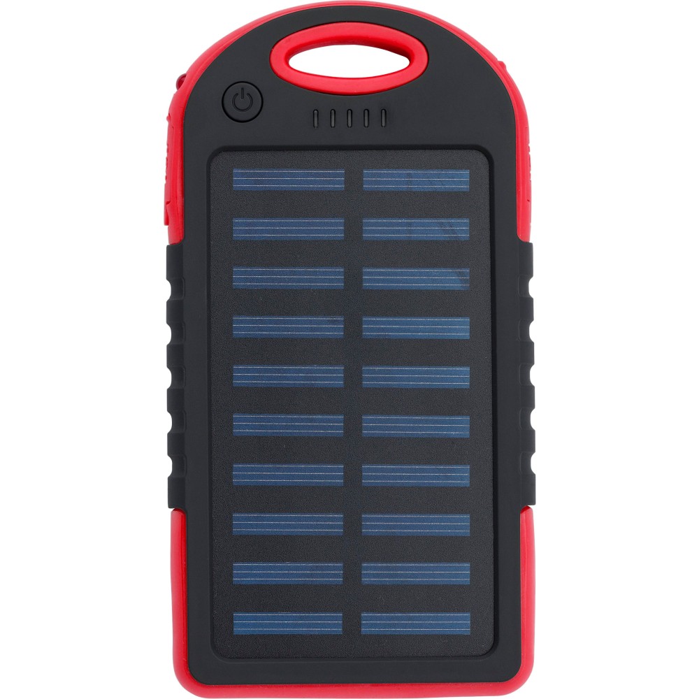 Gumírozott ABS napelemes powerbank zöld jelzőfénnyel és oldalsó elemlámpával. Két USB és egy USB-C porttal. Napelemes töltés: 5V/200mA. Input DC 5V/1A. Output DC 5V/2x1A. Kapacitás: 4.000mAh. USB kábellel.