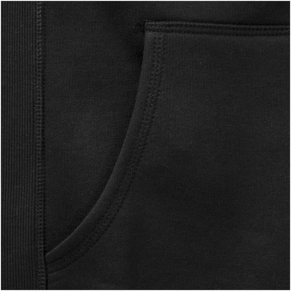 Normál szabásvonal. 2x2-es bordás oldalpanel, ujj- és derékpasszé. Kenguruzseb. Kapucniállító húzózsinór (kivéve gyerek modell). Bélelt kapucni. Saját anyagából készült félholdas betét a nyaknál. Szatén szegély a nyakvonalban. Kontrasztos színű halszálkamintás szalag a kapucniban. Hátul tónusos logónyomat. Antikolt fém fűzőlyuk-gyűrű gravírozott logóval. 80% pamut és 20% poliészter, kötött, belül bolyhozott. 300 g/m2.