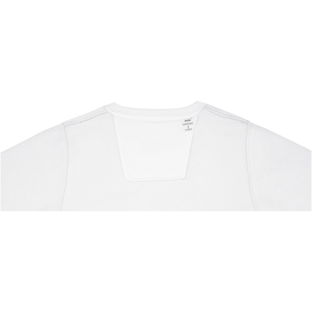 Kereknyakú pulóver belső emblémázási lehetőséggel. Kitéphető címke. Lapos kötésű, bordás nyak-, aljpasszé és kézelő. Belül bolyhos, puha felület. Saját szövetből készült nyakszalag. 50% pamut és 50% poliészter, 240 g / m2.
