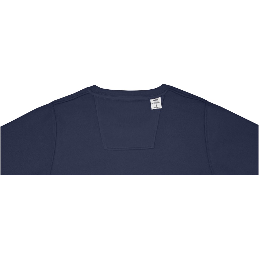 Kereknyakú pulóver belső emblémázási lehetőséggel. Kitéphető címke. Lapos kötésű, bordás nyak-, aljpasszé és kézelő. Belül bolyhos, puha felület. Saját szövetből készült nyakszalag. 50% pamut és 50% poliészter, 240 g / m2.