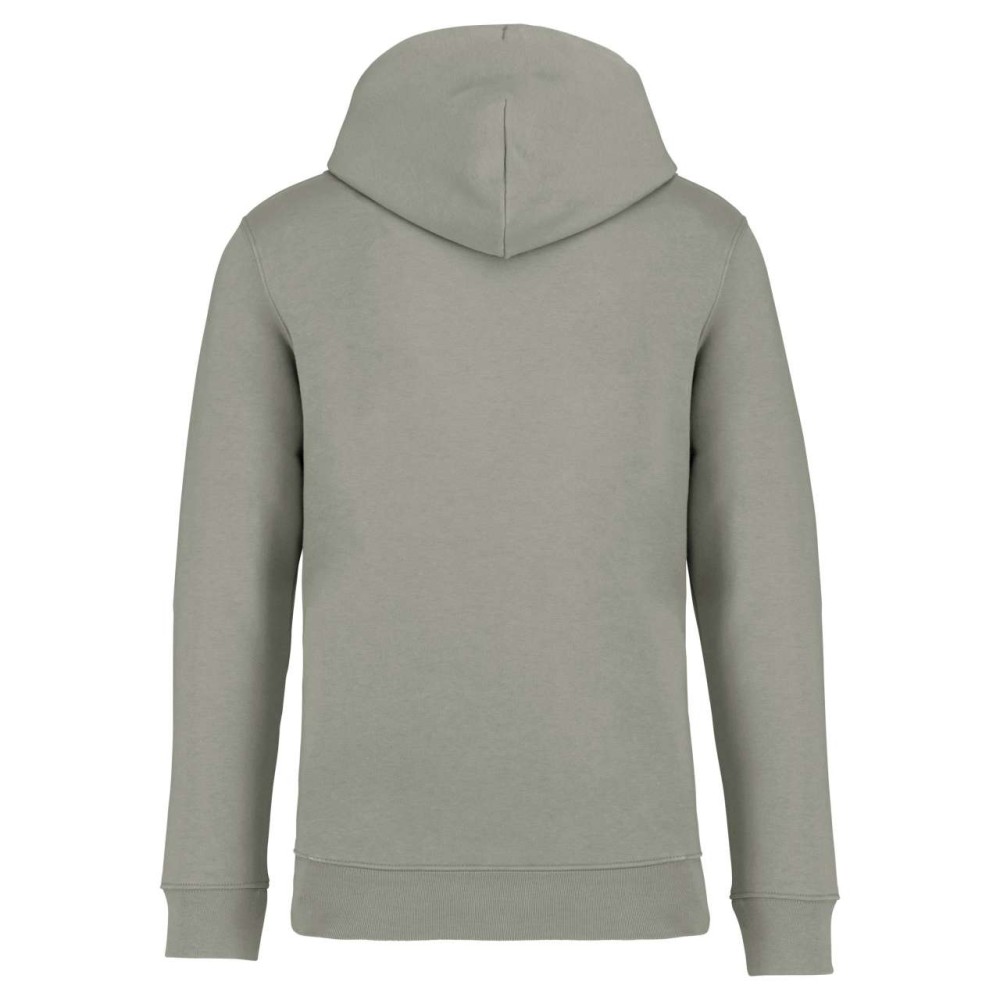 85 % bio, fésült pamutból és 15 % újrahasznosított poliészterből készült. Unisex. Egyenes szabás. Méretcímke organikus pamut és újrahasznosított poliészter logóval. LSF (Low Shrinkage Fleece: előzsugorított polár) kezelés. Kapucni. 1x1 bordás szegély és kézelő. Duplatűzés a kézelőn, a szegélyen és a nyaknál. Szalagozott nyakbelső hátul. Bélelt kapucni, a nyaknyíláson nincs felülvarrás, csak egy megkötés, hogy a húzózsinór a felső részen maradjon. Kerek húzózsinór a kapucnin fém véggel. Kenguru zseb. Nincs márkajelzés a nyakrészen, csak egy méretcímke a könnyű dekorálás érdekében. Karton függőcímkével érkezik, amely felsorolja a termék előállításához felhasznált környezetbarát anyagokat. Organikus pamutfonal. OEKO-TEX N CQ1007/7 STANDARD 100 tanúsítvánnyal rendelkezik. IFTH. 350 g/m2.