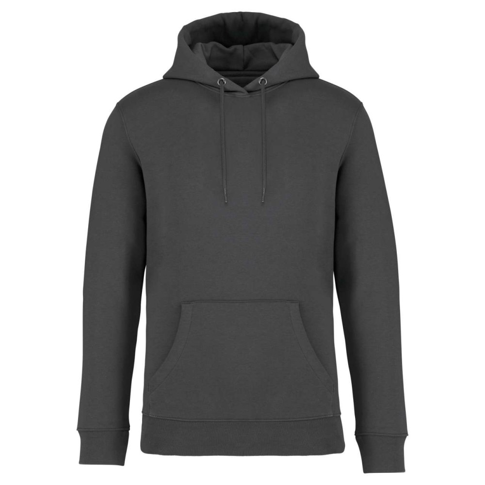 85 % bio, fésült pamutból és 15 % újrahasznosított poliészterből készült. Unisex. Egyenes szabás. Méretcímke organikus pamut és újrahasznosított poliészter logóval. LSF (Low Shrinkage Fleece: előzsugorított polár) kezelés. Kapucni. 1x1 bordás szegély és kézelő. Duplatűzés a kézelőn, a szegélyen és a nyaknál. Szalagozott nyakbelső hátul. Bélelt kapucni, a nyaknyíláson nincs felülvarrás, csak egy megkötés, hogy a húzózsinór a felső részen maradjon. Kerek húzózsinór a kapucnin fém véggel. Kenguru zseb. Nincs márkajelzés a nyakrészen, csak egy méretcímke a könnyű dekorálás érdekében. Karton függőcímkével érkezik, amely felsorolja a termék előállításához felhasznált környezetbarát anyagokat. Organikus pamutfonal. OEKO-TEX N CQ1007/7 STANDARD 100 tanúsítvánnyal rendelkezik. IFTH. 350 g/m2.