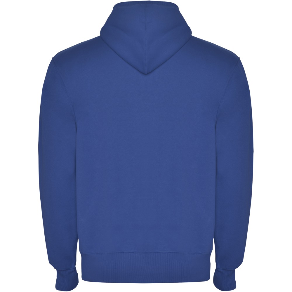 Magasnyakú, kapucnis pulóver teljes cipzárral. Bordázott részletek a kapucni és a zsebek szélén. Kenguru stílusú zseb. 2x2-es bordás kézelő és nyakpasszé. Gyerekméretekben is kapható. 50% pamut és 50% poliészter, 280 g/m2.
