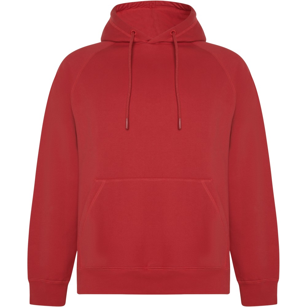 Uniszex, kapucnis pulóver organikus pamutból és újrahasznosított poliészterből. Kenguru zseb. Bélelt kapucni. Állítható húzózsinór és közbehímzett zsinórnyílások. A kézelő- és az aljpasszé 2x1 bordás anyagból készült. Csomagolás egyenként újrahasznosított zacskóban. 60% organikus pamut és 40% újrahasznosított poliészter, 300 g/m2.