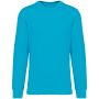 85 % bio, fésült pamutból és 15 % újrahasznosított poliészterből készült. Unisex. Egyenes szabás. LSF (Low Shrinkage Fleece: előzsugorított polár). Kerek nyakkivágás. Félhold alakú. Méretcímke organikus pamut és újrahasznosított poliészter logóval. 1x1 bordás nyakpasszé, alsó szegély és kézelő. Duplaöltés a kézelőn, karöltőben és kézelőn. Egyszeres felülvarrás a nyakkivágáson. Belső szalagozott nyakrész. A nyakrészen nincs márkajelzés, csak méretcímke a könnyebb dekorálás érdekében. A ruhadarabhoz kartonpapírból készült ismertetővel, amely felsorolja a felhasznált környezetbarát anyagokat. OEKO-TEX N CQ1007/7 STANDARD 100 tanúsítvánnyal rendelkezik. IFTH. 350 g/m2.