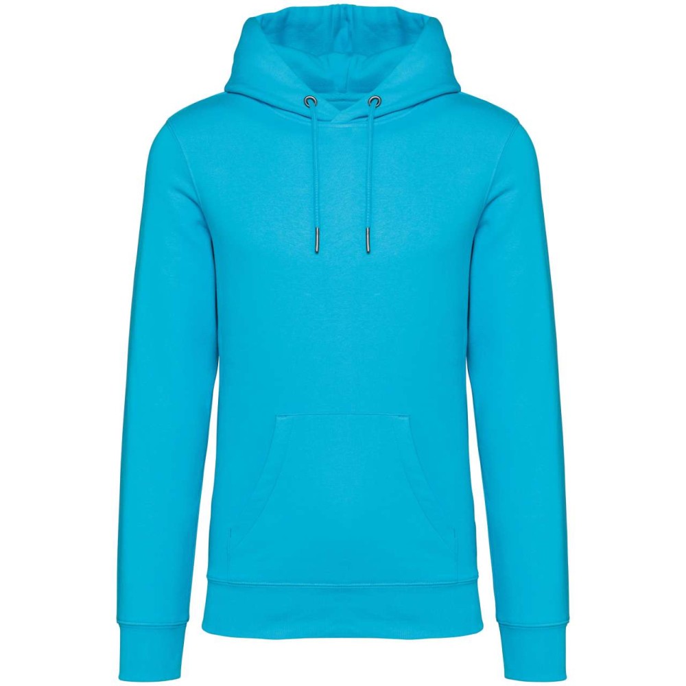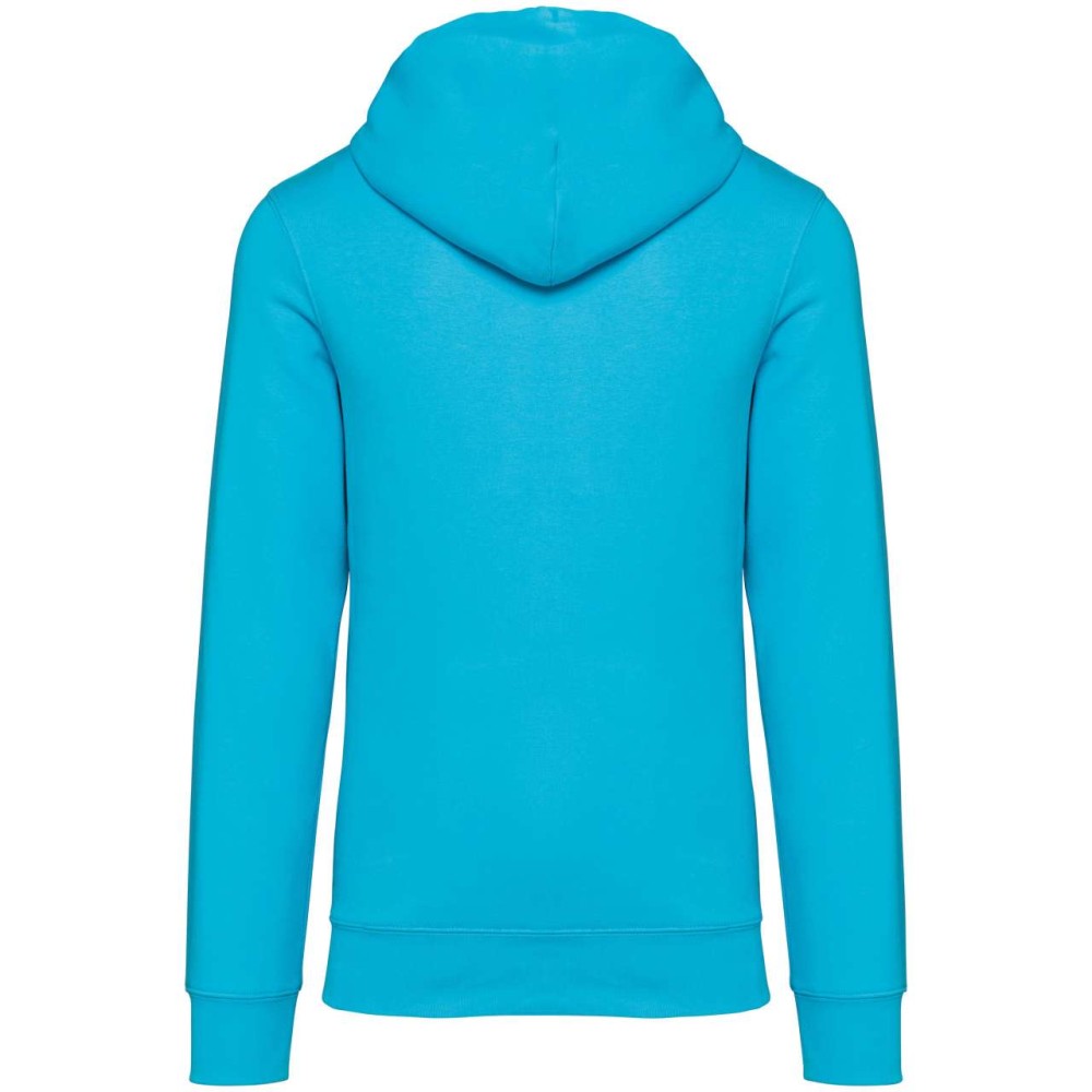 85 % bio, fésült pamutból és 15 % újrahasznosított poliészterből készült. Unisex. Egyenes szabás. Méretcímke organikus pamut és újrahasznosított poliészter logóval. LSF (Low Shrinkage Fleece: előzsugorított polár) kezelés. Kapucni. 1x1 bordás szegély és kézelő. Duplatűzés a kézelőn, a szegélyen és a nyaknál. Szalagozott nyakbelső hátul. Bélelt kapucni, a nyaknyíláson nincs felülvarrás, csak egy megkötés, hogy a húzózsinór a felső részen maradjon. Kerek húzózsinór a kapucnin fém véggel. Kenguru zseb. Nincs márkajelzés a nyakrészen, csak egy méretcímke a könnyű dekorálás érdekében. Karton függőcímkével érkezik, amely felsorolja a termék előállításához felhasznált környezetbarát anyagokat. Organikus pamutfonal. OEKO-TEX N CQ1007/7 STANDARD 100 tanúsítvánnyal rendelkezik. IFTH. 350 g/m2.