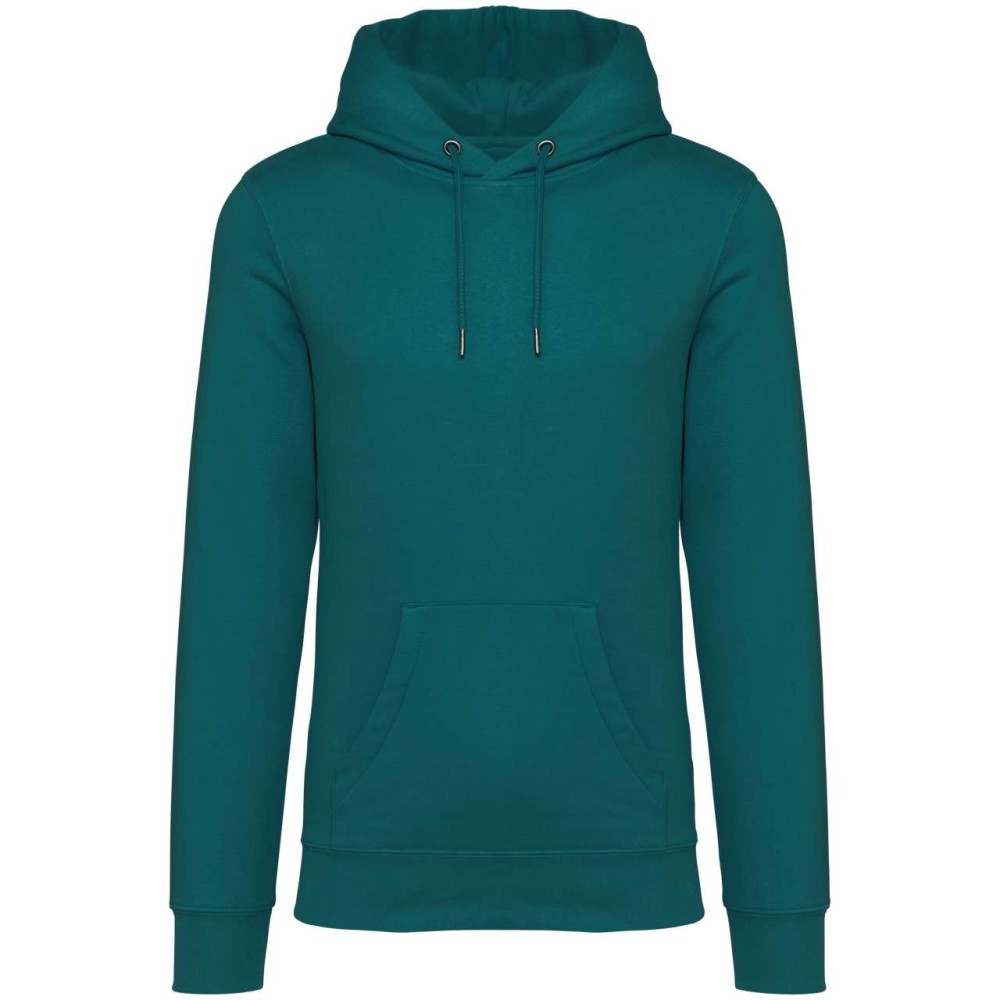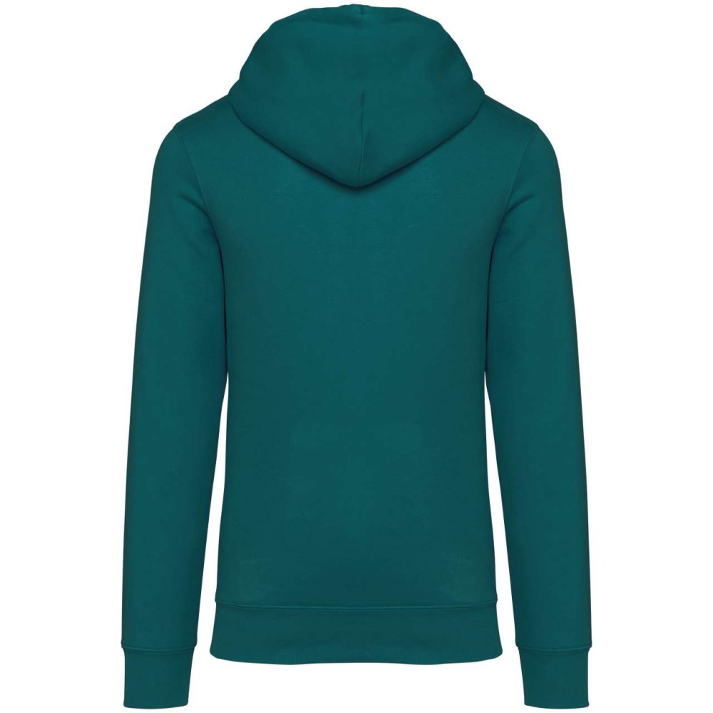 85 % bio, fésült pamutból és 15 % újrahasznosított poliészterből készült. Unisex. Egyenes szabás. Méretcímke organikus pamut és újrahasznosított poliészter logóval. LSF (Low Shrinkage Fleece: előzsugorított polár) kezelés. Kapucni. 1x1 bordás szegély és kézelő. Duplatűzés a kézelőn, a szegélyen és a nyaknál. Szalagozott nyakbelső hátul. Bélelt kapucni, a nyaknyíláson nincs felülvarrás, csak egy megkötés, hogy a húzózsinór a felső részen maradjon. Kerek húzózsinór a kapucnin fém véggel. Kenguru zseb. Nincs márkajelzés a nyakrészen, csak egy méretcímke a könnyű dekorálás érdekében. Karton függőcímkével érkezik, amely felsorolja a termék előállításához felhasznált környezetbarát anyagokat. Organikus pamutfonal. OEKO-TEX N CQ1007/7 STANDARD 100 tanúsítvánnyal rendelkezik. IFTH. 350 g/m2.