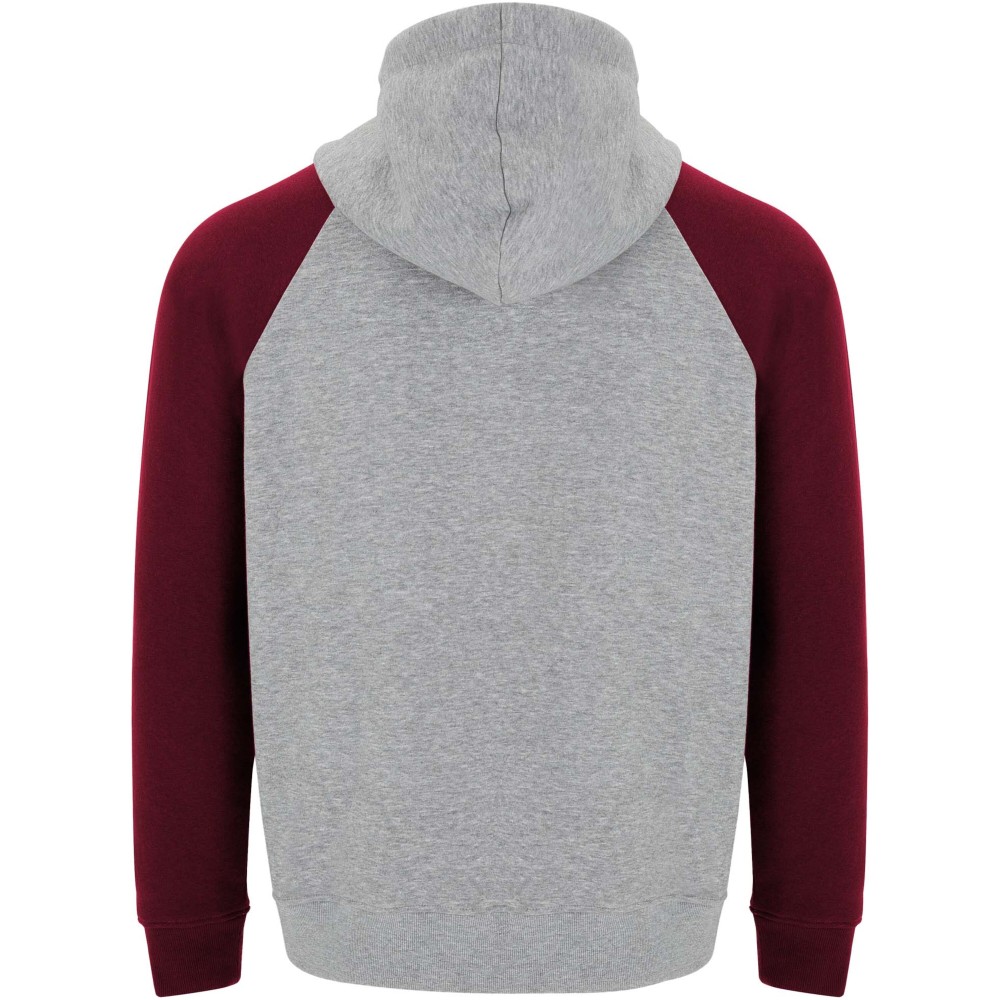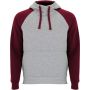 Két színű uniszex kapucnis pulóver. Kapucni keresztezett nyakrésszel és fém kiegészítőkkel. Kontrasztos belső rész a kapucnin, húzózsinór és raglán ujjak. Kenguru zseb. Rugalmas 1x1 passzék és alj. Levehető címke.