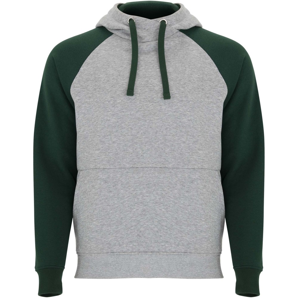 Roly Badet uniszex kapucnis pulóver, Heather grey, Bottle green
